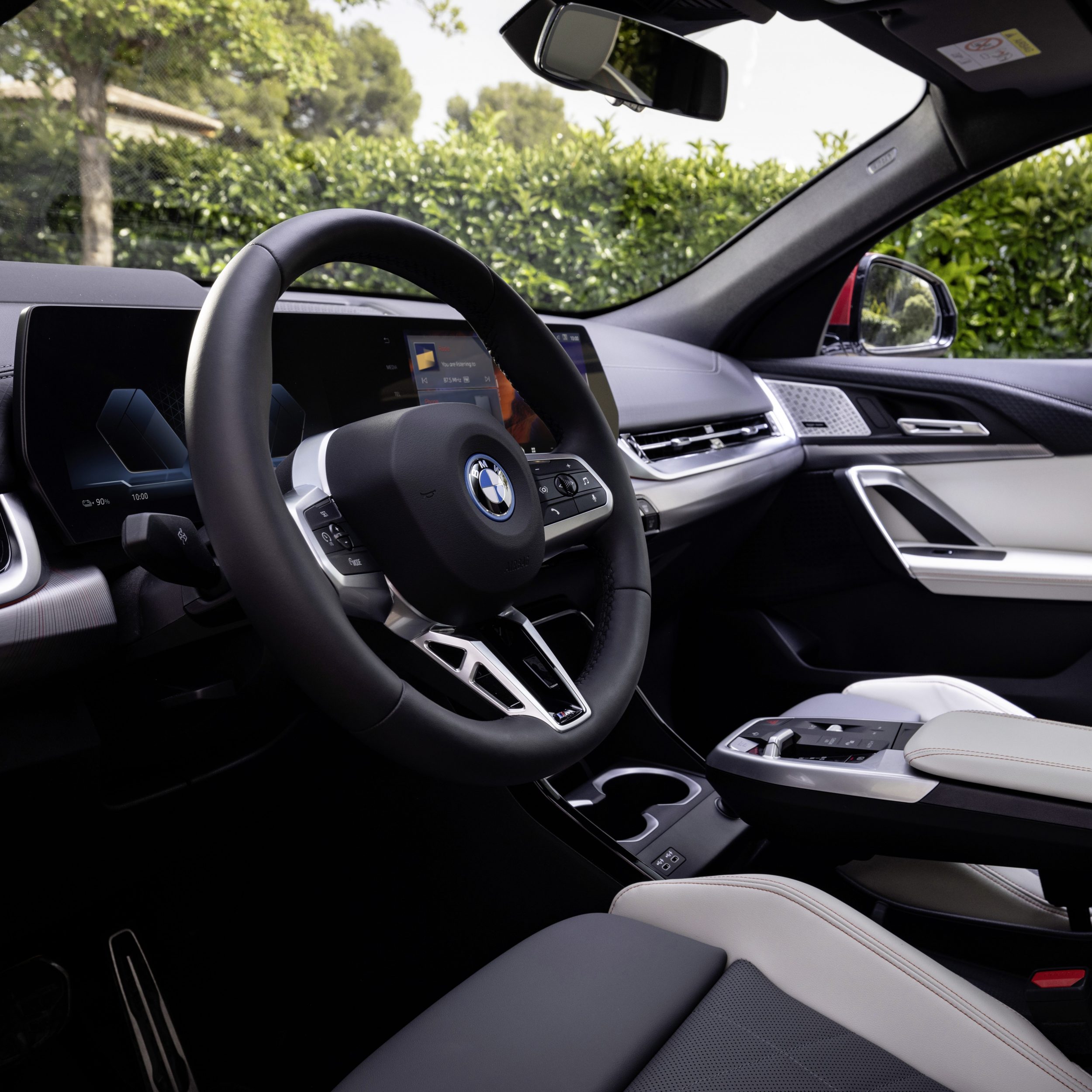 Adhering to the driver-oriented design concept, BMW iX2 is equipped with a BMW Curved Display, combining the instrument cluster and the control display. Sport seats are standard feature for the front row driver and passenger and the newly developed seats are also offered in the Veganza perforated surface, to optimise long-distance comfort.